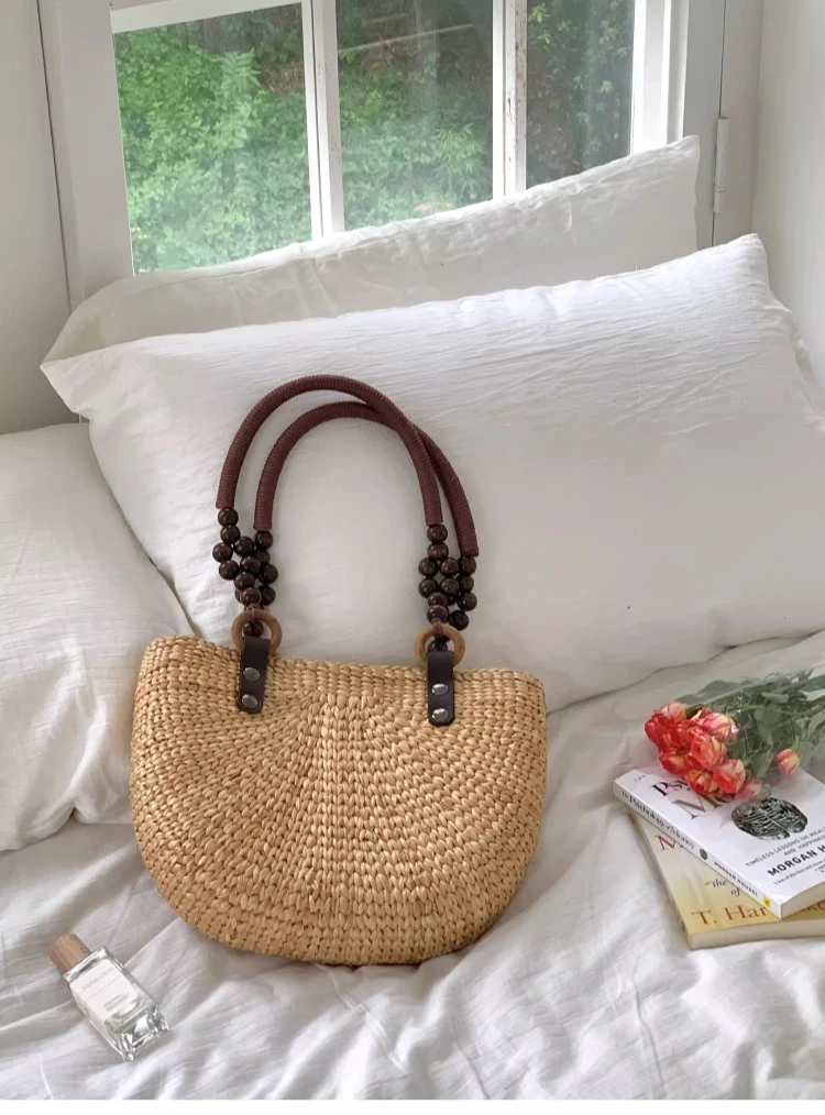 Home > T193 Large Tote Hand Luxury Weave Woven Straw Basket Bags for Women Custom Raffia Clutch Paper Handwoven Summer Beach Bag