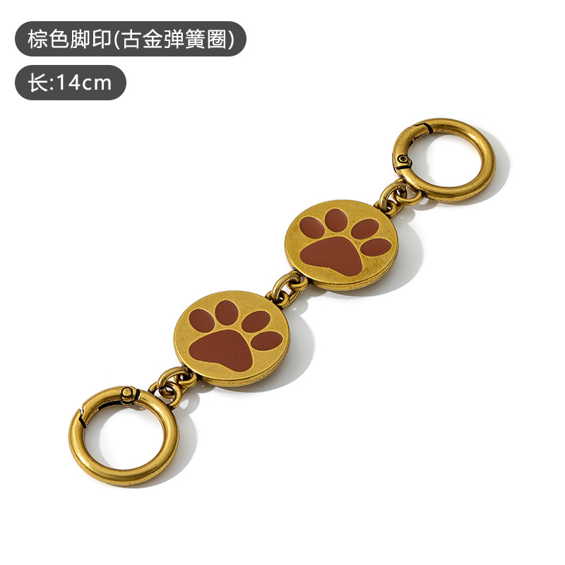 Brown footprint charm - antique gold spring ring, 14cm