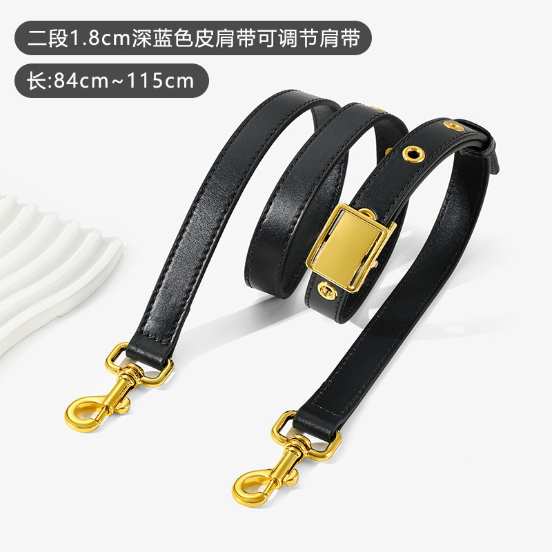 Two-section dark blue leather shoulder strap, adjustable