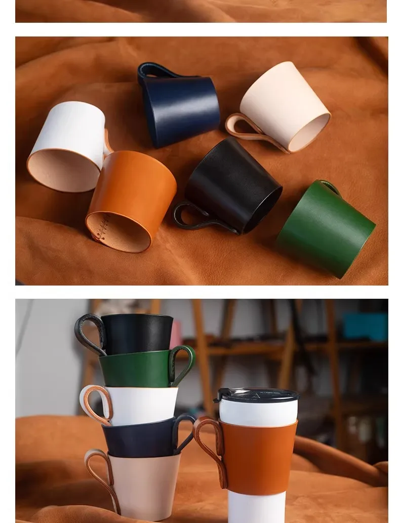 > Ea801 Wholesale Coffee Premade Custom Sleeves Holder Designer Women Cold Drinks Genuine Leather Fashionman Luxury Cup Sleeve