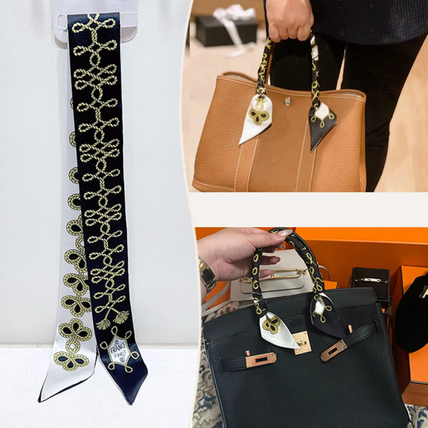 > Ea805 Charm Bag Twilly Scarves for Women Printed Polyester Blank Inspired Handbags High Quality Luxury Wholesale Custom Silk Designer Scarf