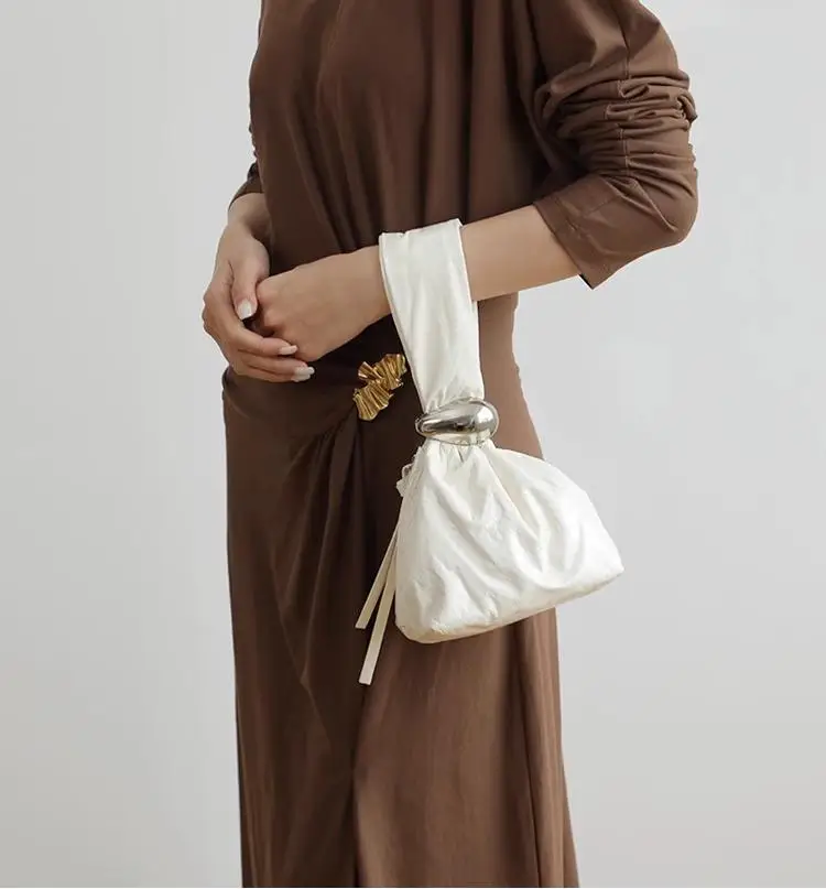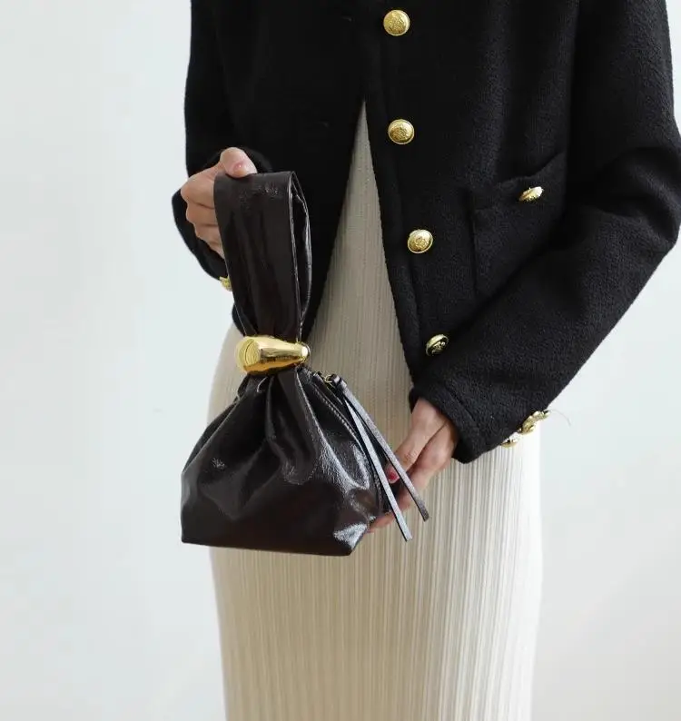 EMG7473 Small Niche Designer Buying Oil Wax Cowhide Pleated Cloud Bag Handbag Bucket Bag Mobile Phone Bag